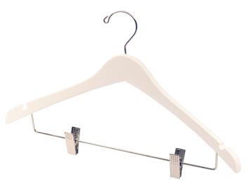 17″ Wooden Coat Hanger – White with Chrome Clips